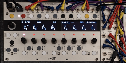 The Vector sports numerous parameter lanes to get you started: Pitch, Pitch Glide, Gate Time, Groove Timing, Velocity, three lanes of MIDI CCs, Step Length, Step Repeat, Ratchet and two sets of Chance Operations. It's super easy to start with a few steps of Pitch and Gate values, then add in other lanes as needed.
